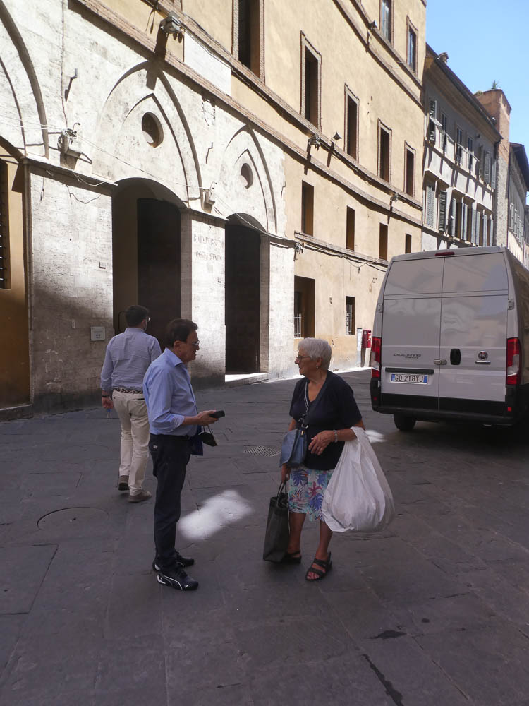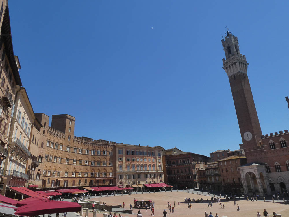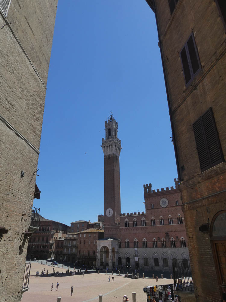 Aber dieser Kilometer (oder sind es zwei?) ist nicht unüberwindbar. Zumal das Thermometer auch erst auf 31 Grad geklettert ist. Dazu muss man aber anmerken, dass sich die Hitze in den engen Gassen Sienas fängt. Aber wer würde meckern?