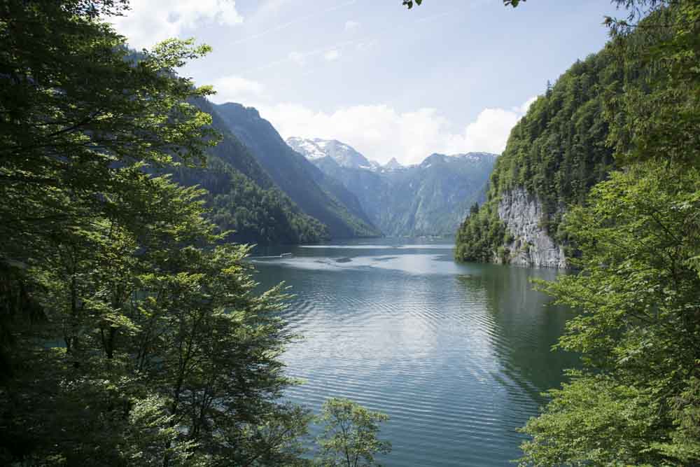 Aus irgendeinem Grund fällt uns ein, an den Königssee zu fahren. Huch! Das geht hier ja zu wie am Lake Louise in British Columbia, Kanada. Um die Schönheit in Gänze geniessen zu können, sollen wir einen Bootsausflug machen. Soweit kommt es noch… Lieber latschen wir querfeldein Richtung Malerwinkel. Schöner Waldweg, schöner Blick auf den See und die wirklich beeindruckende Kulisse. Unbeschadet vom Königssee-Rummel machen wir uns davon Richtung Chiemsee.