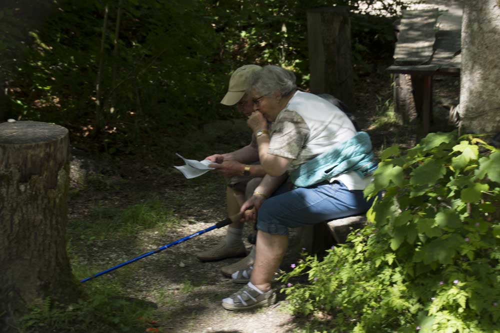 Es braut sich über uns etwas zusammen. Während wir vor dem Abendessen ab sechs noch einen Moment die Beine hochlegen, explodiert die Welt um uns herum: Gewitter, schwerer Regen – Weltuntergang. Eine halbe Stunde später ist Ruhe eingekehrt; wir gehen essen. Die vom “Feinschmecker“ mehrfach lobend erwähnte Küche ist – okeeeh. Besser wird sie auch mit mehr Bier nicht. Dennoch ist die Bude voll: Familien aus der Gegend, Wanderer – alles da.