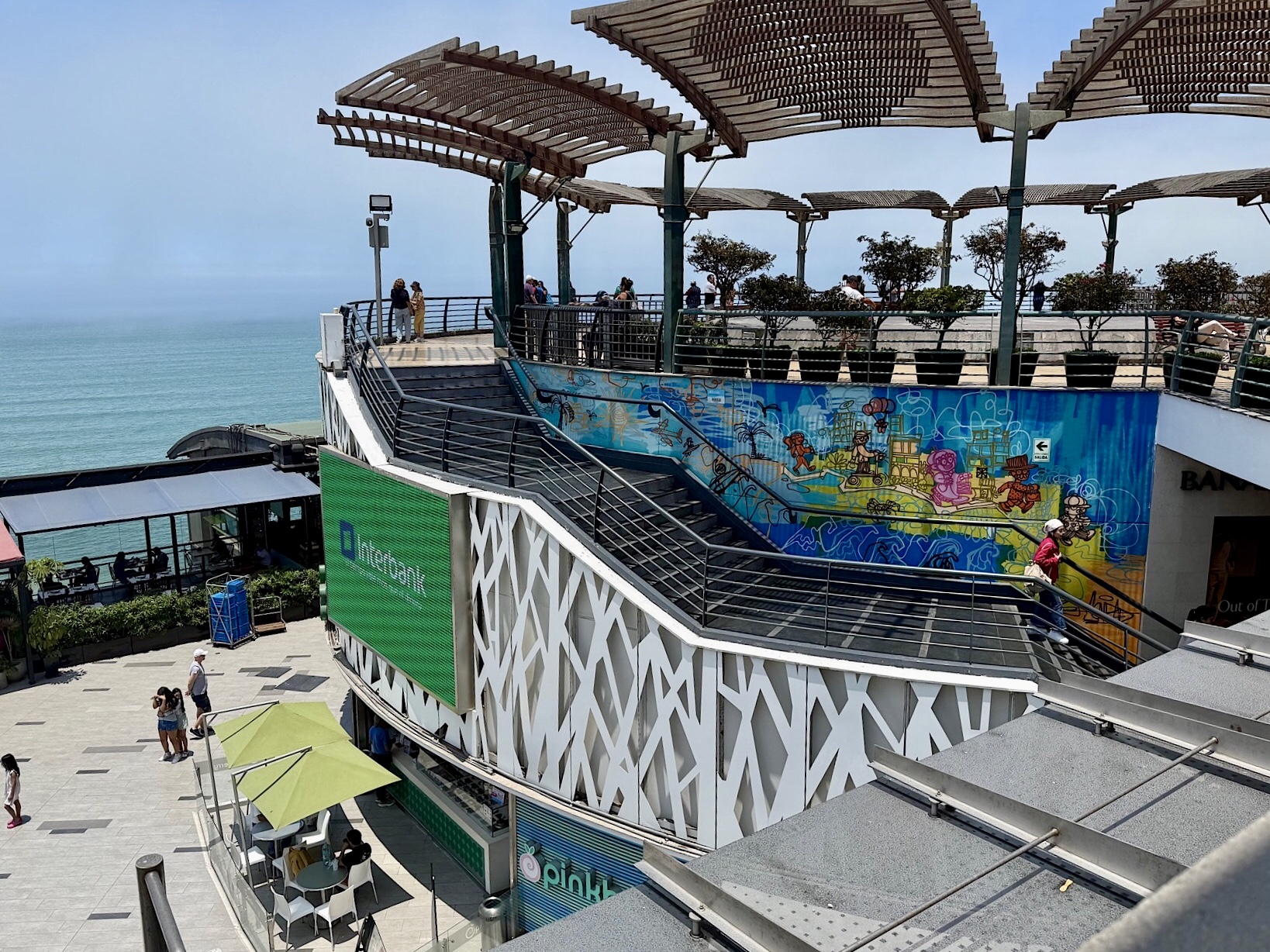 Aber wir sind ja nicht zum Baden hier, sondern zum Gucken. Direkt an der Küste wurde ein Shopping‑Center gebaut, und mir fällt fast die Sonnenbrille aus der Hand, als mir jemand mit einer H&M‑Tüte entgegenkommt. Das ist Miraflores in einem Bild: globalisiert bis zur Austauschbarkeit, und doch irgendwie faszinierend, weil es so unangestrengt dazugehört.