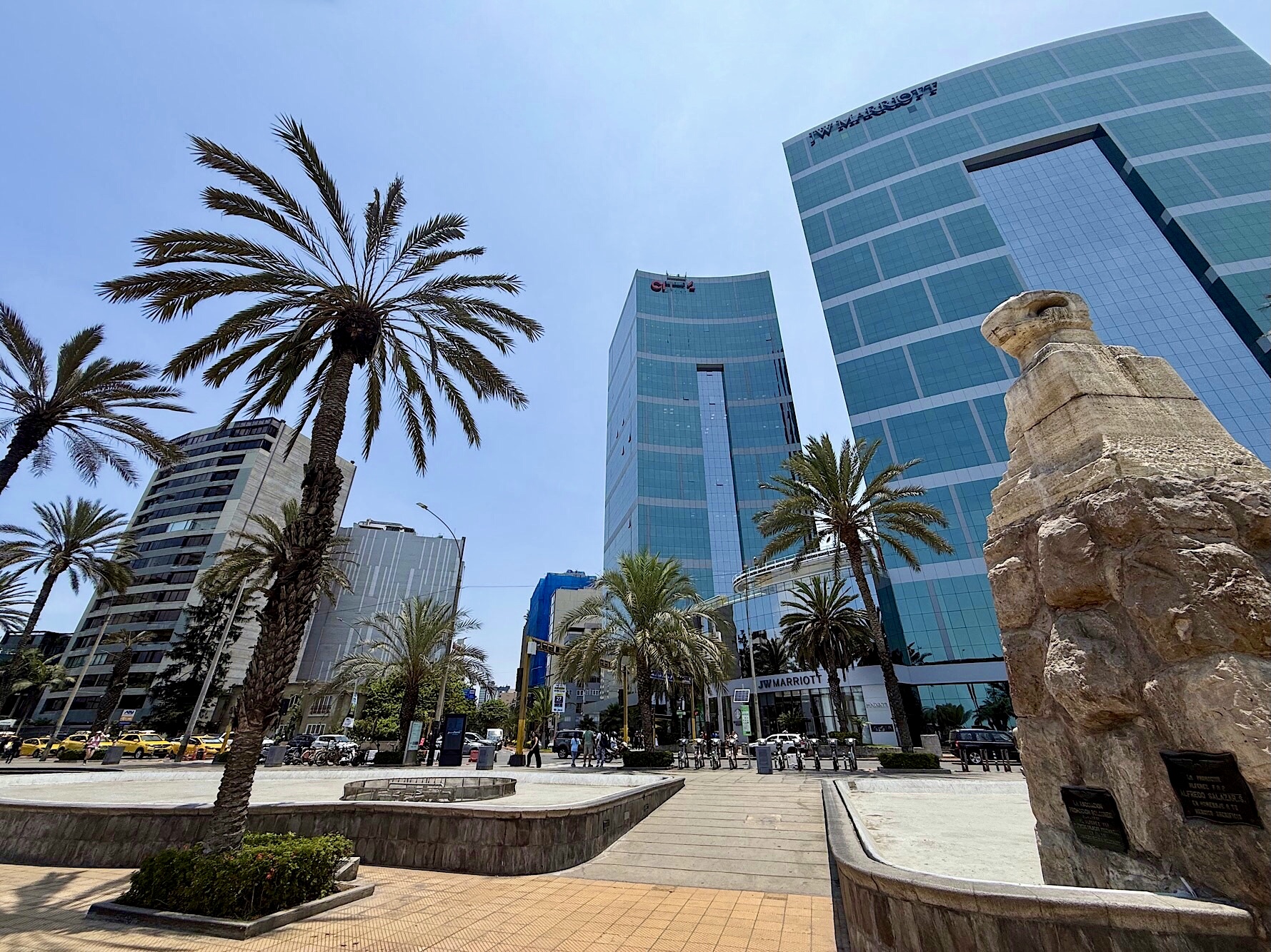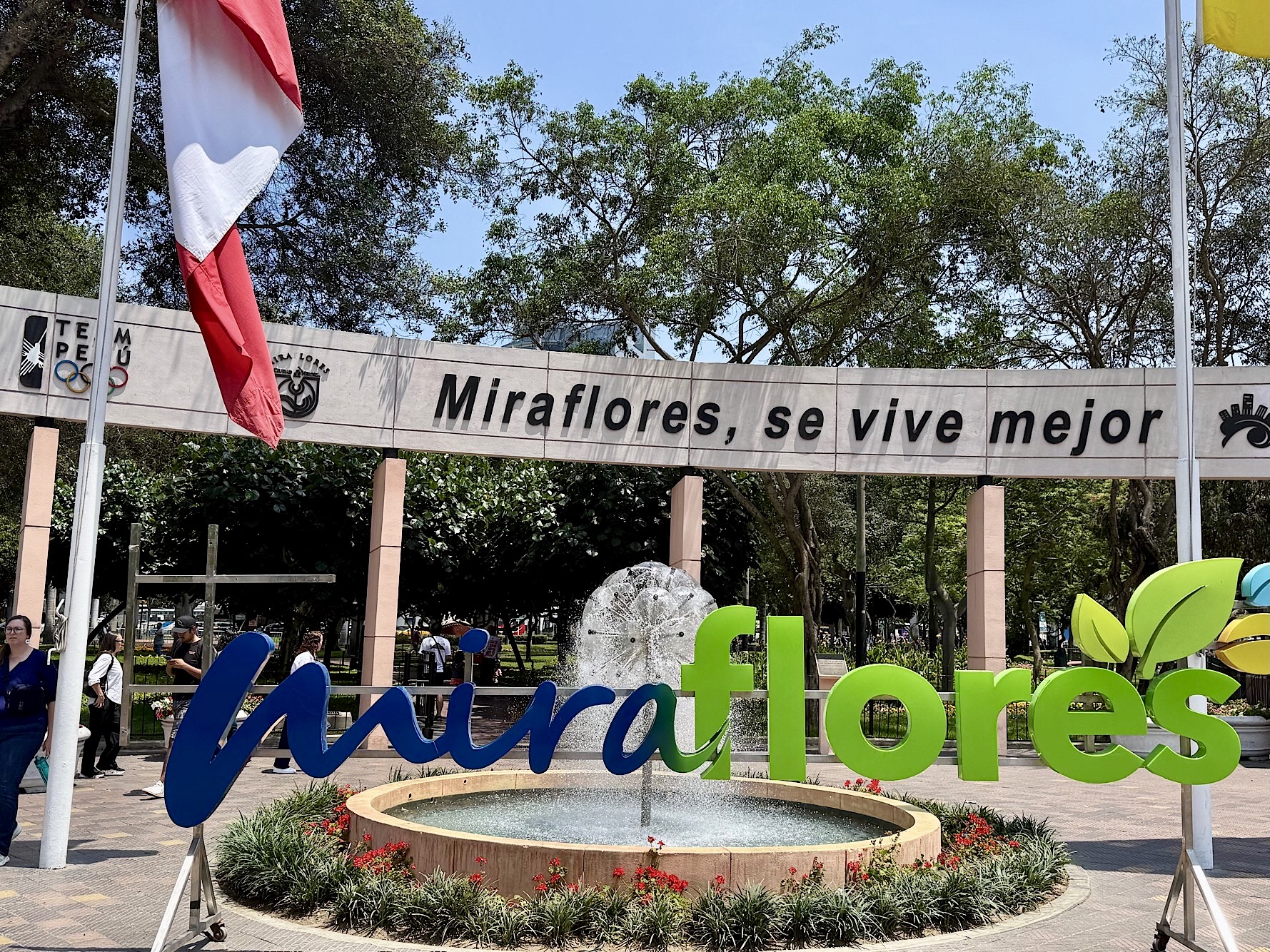 Was in diesem sehr modernen Stadtteil sofort auffällt: Es gibt viele Touristen. Wir hören britisches und amerikanisches Englisch, etwas Chinesisch, und erstaunlich oft brasilianisches Portugiesisch. Miraflores ist ein globales Drehkreuz mit nahezu allen internationalen Hotelketten und klingt auch so.