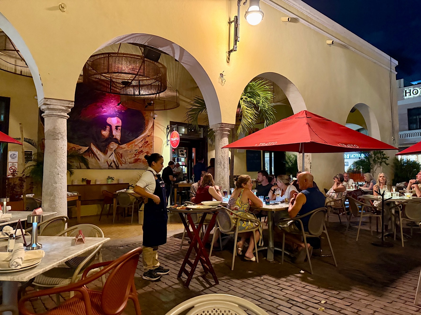Das Hotel Santa Lucía ist schlicht, eher bescheiden, aber seine Lage ist unschlagbar: direkt gegenüber dem Parque de Santa Lucía, einem der charmantesten Plätze Méridas, wo abends Musiker auftreten, Paare tanzen und Restaurants ihre Tische unter die Bäume stellen. Wir landen im Tratto, einem italienischen Restaurant, das sich anfühlt wie ein mediterraner Kurzurlaub — Pasta, Wein, Touristen aus aller Welt, ein Ort, der zeigt, wie sehr Mérida inzwischen im globalen Reiseuniversum angekommen ist. Danach kaufen wir noch schnell Wasser fürs Zähneputzen, ein banaler, aber notwendiger Abschluss eines Tages, der uns durch Landschaften, Realitäten und Geschichten führt, die sich sonst kaum in acht Stunden zusammenfassen lassen.