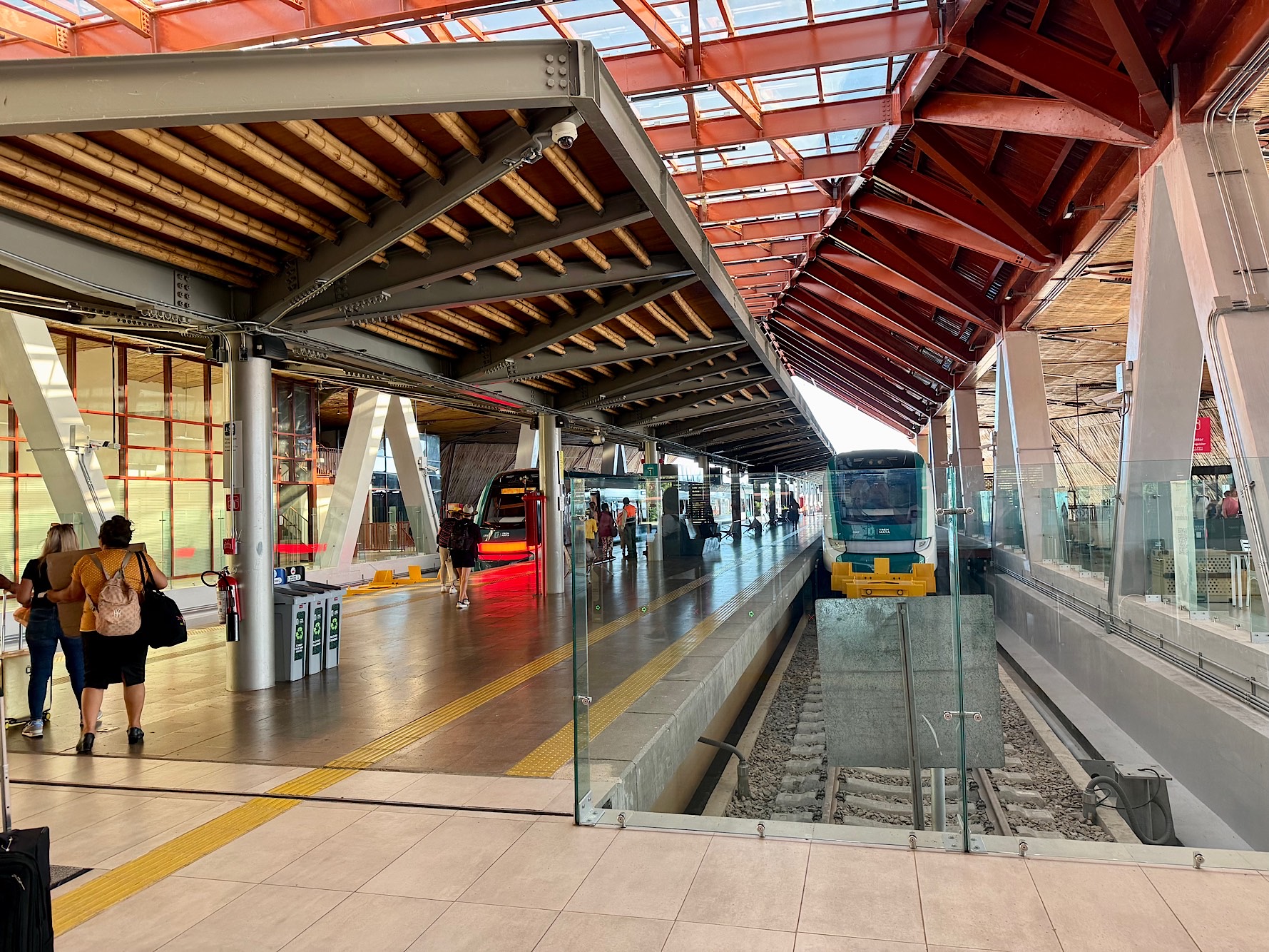 Der Bahnhof mit seinem Drum und Dran ist eine Mischung aus Effizienz und Inszenierung, als wolle man demonstrieren, dass der Süden Mexikos endgültig im 21. Jahrhundert angekommen ist.