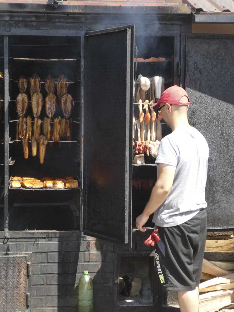 Jenseits des Strandes über einen kleinen Waldweg stehen wir plötzlich vor einem bizarren Bauwerk: Pirat. Aha. Aha? Hier steht ein Räucherofen neben dem anderen, Fische landen vom Boot direkt im Rauch. Der Duft ist unbeschreiblich! Direkt bei den Fischern eine Kneipenterrasse, auf der wir ein Bier in der Sonne zischen und das Strandleben beobachten. Schade, dass wir noch keinen Hunger haben.