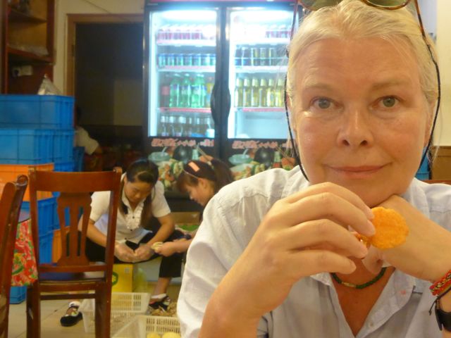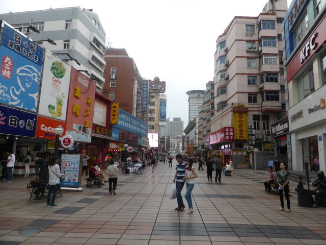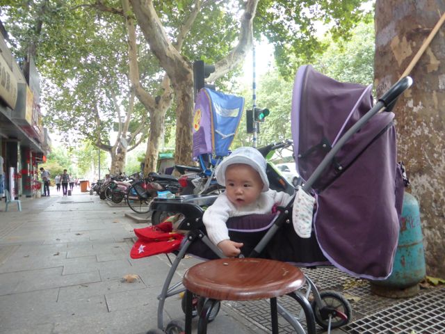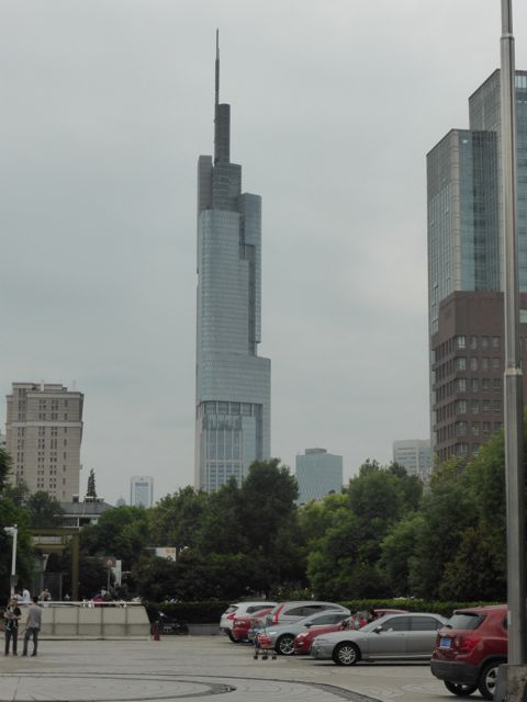 Nanjing ist natürlich ebenfalls ein solcher Moloch. Wir überqueren den Yangtse, fahren durch Häuserschluchten und fürchten uns ein bisschen vor der Stadt, weil 34,2 Grad im Zug avisiert werde . Aber es nützt ja nix. Angekommen am riesigen Südbahnhof haben wir in der vielleicht 200 Meter langen Schlange der auf ein Taxi Wartenden Zeit, uns zu akklimatisieren. Und stellen fest, dass es höchstens 24 Grad warm ist. Mit dem Taxi kurven wir wild herum, haben schon den Eindruck, dass der hupende und andere Autos im Affentempo schneidende Taxifahrer nicht die Andeutung einer Ahnung hat, wo das Orange Hotel Nähe dem Xuanwu Lake liegen mag. Aber Irrtum. In einer Seitenstraße, direkt hinter der berühmten historischen Stadtmauer, liegt unser Hotel. Die Eincheckprozedur zieht sich. Unsere Pässe werden Seite für Seite kopiert, in rudimentärem Englisch wollen die Damen eine 100 Yuan Kaution, was albern ist, weil das nur 12 Euro sind. Aber nach einer gefühlten Stunde sind wir dann in unserem 35-Euro-Zimmer. Wifi ja, Klima auch, aber leider kein Safe. Das ist blöd, weil wir ja einen ganzen Apfelkorb mit uns herumführen. Aber auch das nutzt nichts. Wir blaffen uns ein bisschen an, weil ja jemand die Schuld haben muss. Und trollen uns Richtung Hunan Lu, weil wir Hunger haben. Noch ist nicht alles geöffnet, aber natürlich finden wir einen Laden, essen eine Kleinigkeit und laufen dann durch die Stadtmauer zum See. Es ist kühl inzwischen, außerdem so windig, dass ich das Tüchlein um den Hals binde. Aber für heute ist die Luft raus. Wir haben genug von Stadt und Sehenswürdigkeiten, von guten und schlechten Entscheidungen und Gehirn zurück ins Hotel. Nicht einmal zum Essen wollen wir noch raus. Juan zieht los und kommt eine halbe Stunde später mit zwei Dosen Bier und einem Paket wheat Crackers, unserer Notration, zurück. Im Fernsehen verfolgen wir den Taifun, der dieser Tage auch Shanghai (da sind wir ab übermorgen) heimsuchen könnte. Und ich telefoniere mit Natzilie, die gerade aus der Türkei zurück und auf dem Sprung nach Berlin ist, via FaceTime. Wir lachen und schnacken ein bisschen, dann geht Natz in Hamburg einkaufen und ich in Nanjing ins Bett. Morgen wollen wir die Stadt von John Rabe mal etwas unter die Lupe nehmen. Den Vergnügungspark schenken wir uns trotz einiger Bauten, die wir gern besichtigt hätten, das Denkmal des japanischen Massakers werden wir wohl auch nicht schaffen, dafür soll es Konfuzius mit uns zu tun bekommen…