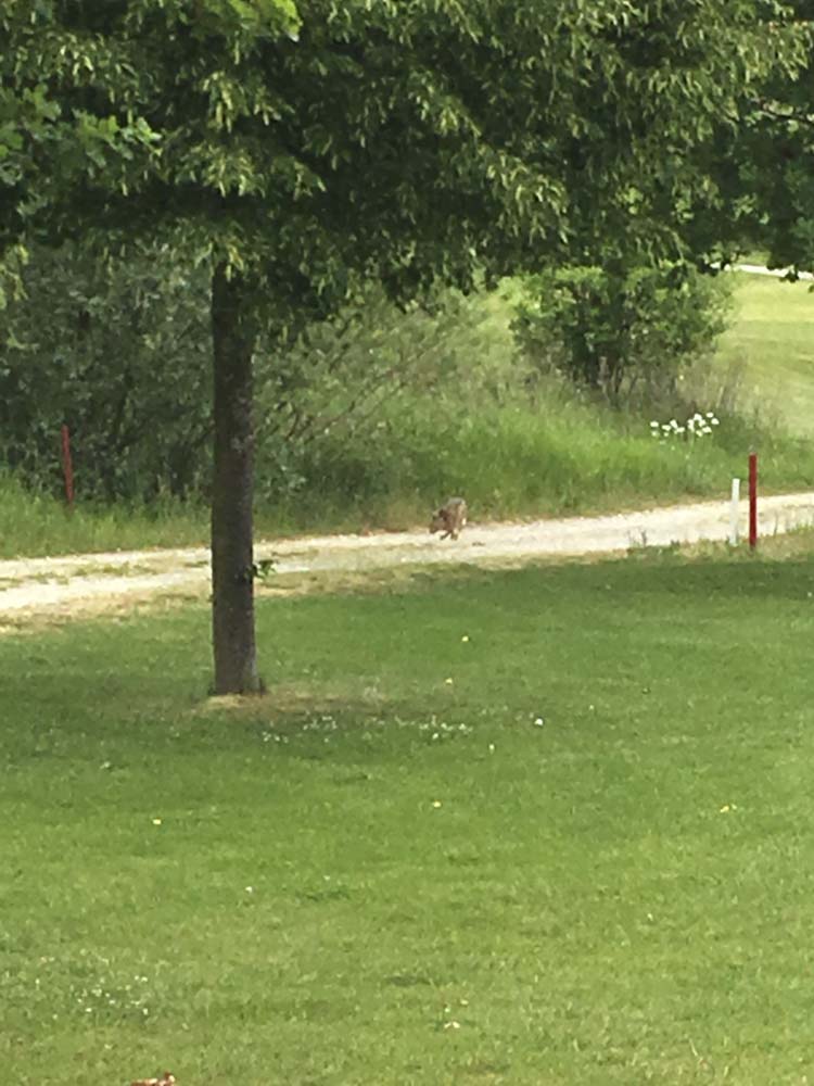 Juan langweilt sich auch nicht, spielt neun Loch und freut sich über Begleitung: dicke Hasen und ein eleganter Fasan begleiten ihn auf seiner Runde. Fast zeitgleich sind wir fertig und auch ziemlich erledigt…