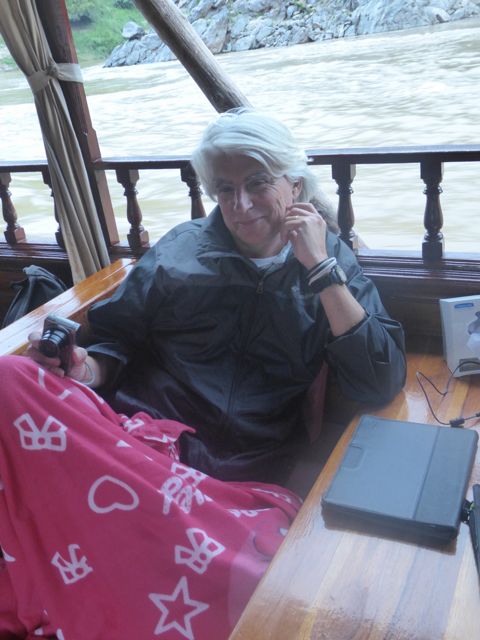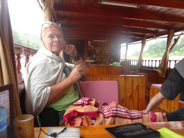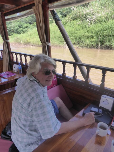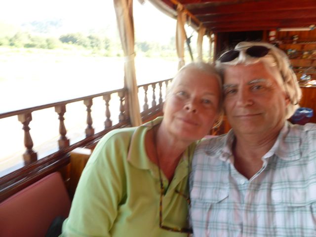Ich bin froh, wieder auf dem Schiff zu sein. Der Husten nimmt mir den Atem, schon nach kurzen Steigerungen bin ich fix und fertig. Wir werden uns nach einem Erholungsdomizil umsehen. Aber erst einmal genießen wir weiter unsere Mekong-„Kreuzfahrt“. Der Strom an unseren Tischen wurde ausgeschaltet, es wird im Heck wohl gekocht. Die Sonne scheint – kein Grund zur Klage!