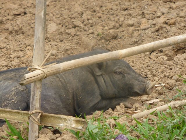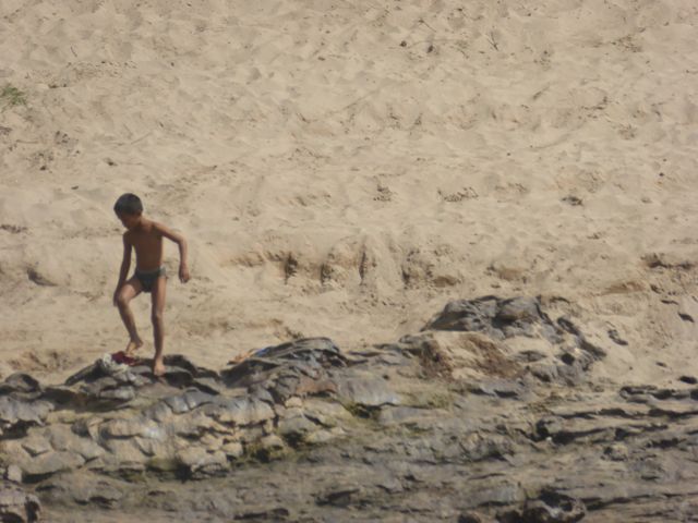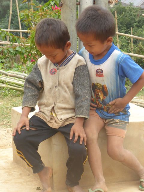 Gerade haben wir eine Schule besucht, die vor zwei Jahren gegründet wurde und von touristischen Organisationen und Unternehmen unterstützt wird. Sie liegt hoch über einem Dorf direkt am Mekong, hat rund 40 Schüler unterschiedlicher Altersklassen von vier bis 10 Jahren. Der Guide hat ein paar Süßigkeiten mitgebracht, aber lange, bevor die zum Vorschein kommen, lachen und scherzen wir schon mit den Kindern. Das Dorf, das unter der Schule liegt, ist auch noch relativ neu. Kein Strom, kein Trinkwasser, nichts. Und bereits ein beginnendes Müllproblem. Früher, erklärt der Guide, sei alles, was weggeworfen wurde, einfach zerfallen. Aber seit der Kunststoff Einzug gehalten hat, wissen die Menschen nicht, wohin damit. Also alles in den Busch… Auch frei herumlaufende Schweine, Hühner und Hunde können nicht darüber hinwegtäuschen, dass hinter der Idylle ein massives Problem steckt. Comme si – Comme ça berichtet über die Teilung der Aufgaben: die Frauen machen alles – außer Jagen und Fischen. Das ist die einzige Aufgabe der Jungs. Alles sehr archaisch…