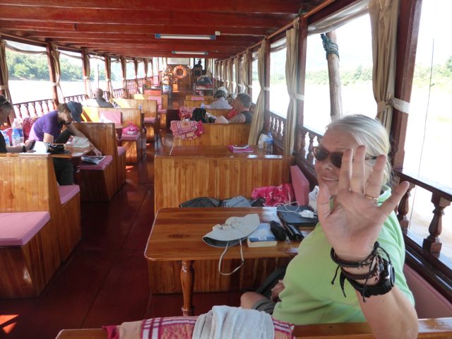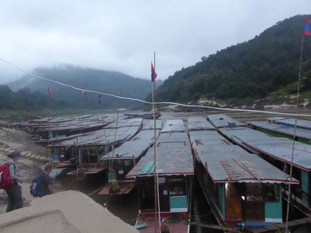 A las 6 menos cuarto sonó el despertador y a las 6:20 estábamos en el muelle donde estaban todos los barcos. El guía ya nos estaba esperando, nos pregunto si habíamos visto los dos elefantes que pasaron caminando ayer a la noche del otro lado del Mekong, después que llegamos. No los vimos, pero sabíamos porque Werner si los vio y nos lo había contado. También llego el resto del pasaje inclusive Werner. Yo lo salude y me disculpe porque anoche lo dejamos sólo en el restaurante para que no haya malentendidos. Werner es medio pesado pero un buen tipo y yo a la mañana después de dormir me arrepiento de mi mal humor del día anterior.