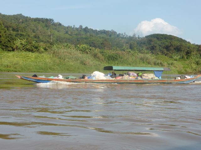 Und weiter ziehen wir über den Mekong. Gestern, auf der ersten Strecke, 160 km, heute noch einmal 140, was wieder den ganzen Tag dauern wird. Anschließend werden wir mit einem Minivan nach Chiang Rai in Thailand fahren, aber soweit ist es noch nicht.