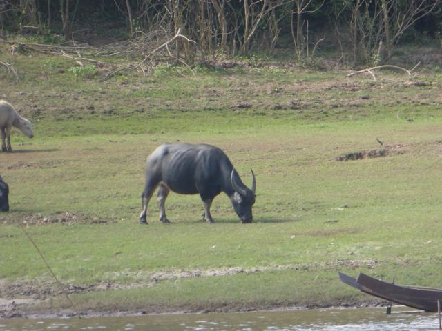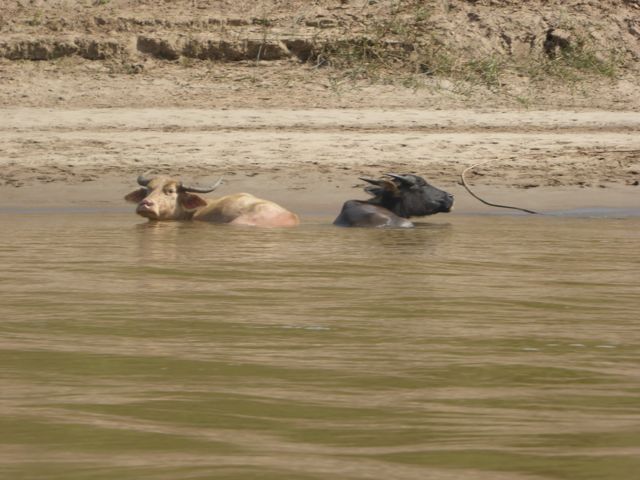 El paisaje continuo igual, con la diferencia que a partir de Pakbeng hay más explotaciones forestales y se ven más poblados o animales como vacas y cabras que sólo pueden pastorear a la orilla del río porque el resto son bosques. En algunas partes se ven también caminos.