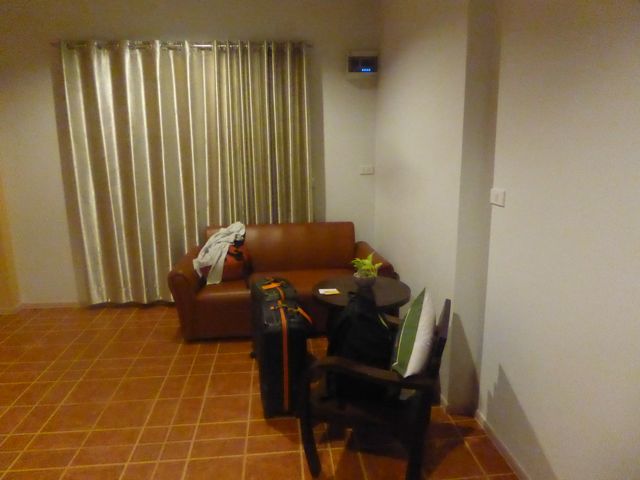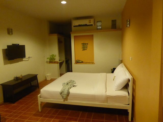 Wir jedenfalls springen ins nächste Tuktuk und fahren ins Hotel Baan Jaru. Dort werden wir begrüßt wie lange vermisste Verwandte. In diesem Einsterner für 30 Euro ist es nett: riesengroßes Zimmer, Bad ok, blitzsauber. Wir müssen dringend Nahrung und Getränke zu uns nehmen, haben nebenan einen Laden gesehen. Not so good. Aha, also einmal rum um den Tempel, da gibt es Bars und Restaurants. Auch ein paar Damen, die anschaffen gehen , sind dabei, aber das stört ja niemanden. Wir essen kurz etwas, stürzen ein Bier und gehen direkt zurück ins Hotel. What a day!