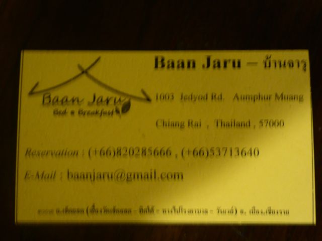 Ahí nos estaba esperando otro mini bus para llevarnos cerca de 200 kilómetros hasta Chang Rai. Viajamos prácticamente de noche, cuando creíamos que llegábamos a Chang Rai vemos que el chofer sigue charlando con su amiga, como en todo el viaje. De pronto Birgit tuvo un presentimiento y le pregunta desde el asiento del fondo, donde estábamos sentados, si el sabe que nosotros vamos a Chang Rai, escuchamos una exclamación pero no una respuesta. En un semáforo Birgit le repite la pregunta y el responde: I know ( lo sé ), en el mismo semáforo pegó la vuelta y volvió 16 kilómetros hasta Chang Rai, los demás pasajeros que iban todos a Chang Mai, 300 kilómetros más, no les cayó nada bien la equivocación de chofer que se había olvidado de nosotros, tal vez por su charla amorosa con su amiga 🙂 Gracias a Birgit nos salvamos de tener un problema, porque 100 kilómetros más adelante, no hubiese pegado la vuelta. Nos dejo en una terminal de buses y de allí tomamos un tuk tuk hasta nuestro hotel. El hotel es simple pero de entrada nos gusto, si pensamos que nos cuesta lo mismo que el miserable hotel de Pakbeng más todavía. Aparte de ser muy completo dentro de su categoría, la familia que lo administra es muy simpática y tiene además el wifi más rápido que tuvimos en todo el viaje.