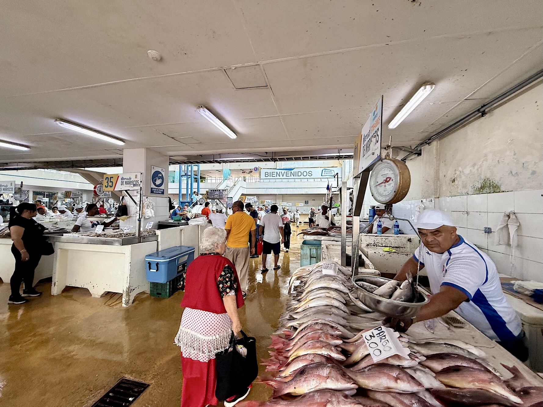 Gestern haben wir Südamerika mit dem Flieger aus Peru verlassen, ab heute entdecken wir für uns Neuland: Panama, unsere erste Station in Zentralamerika. Gegen zehn Uhr morgens rollen wir mit einem Uber zum Mercado de Mariscos, dem Fischmarkt. Schon von weitem riecht man die salzige Luft, und drinnen entfaltet sich ein faszinierendes Panorama: Thunfisch, Snapper, Garnelen, Muscheln – alles frisch auf Eis, alles so lebendig, dass man fast meint, die Ozeane selbst hätten hier einen Stand eröffnet. Der Markt ist noch jung, erst Mitte der 1990er Jahre gebaut, aber längst Herzstück der Stadt. Früher gab es nur kleine Verkaufsstellen, bis ein Meeresbiologe die Panameños davon überzeugte, dass Fisch mehr ist als Beilage. Heute ist der Mercado de Mariscos ein Fest für Augen und Gaumen und theoretisch ein guter Ort, um sich gleich mit einem Ceviche zu stärken. Das ist uns aber noch zu früh.