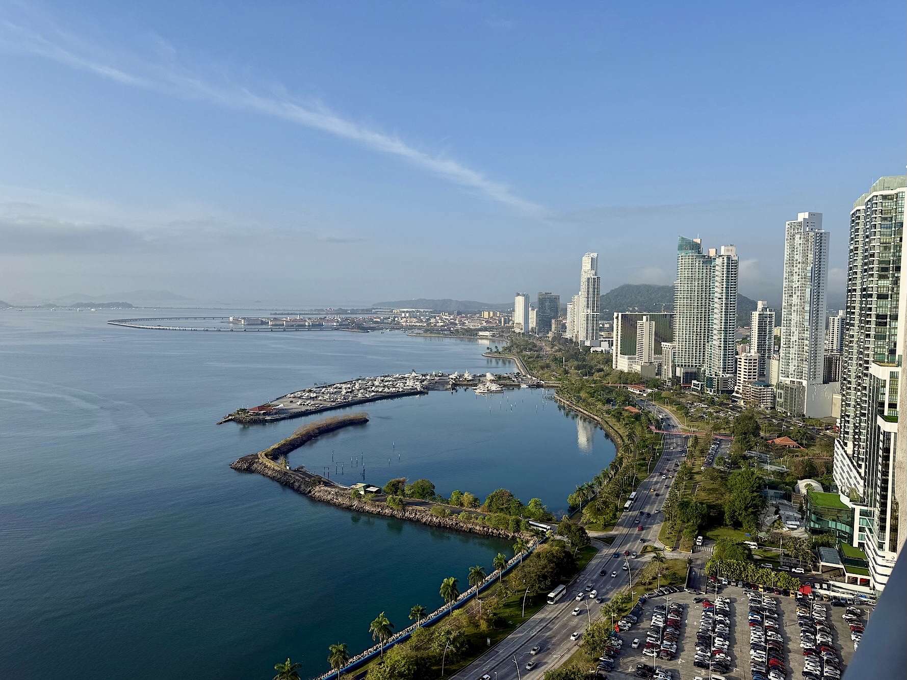Zurück im modernen Teil der Stadt fehlt uns etwas Banales: Handtücher für den Pool. Unser Vermieter hat keine, also Uber zum Convey-Kaufhaus an der Avenida Balboa. Zwei günstige Tücher später stolpern wir in ein nicaraguanisches Restaurant. Juan bekommt Fisch, ich Huhn in einer köstlichen Knoblauchsauce. Alltag, wie er schöner nicht sein könnte.