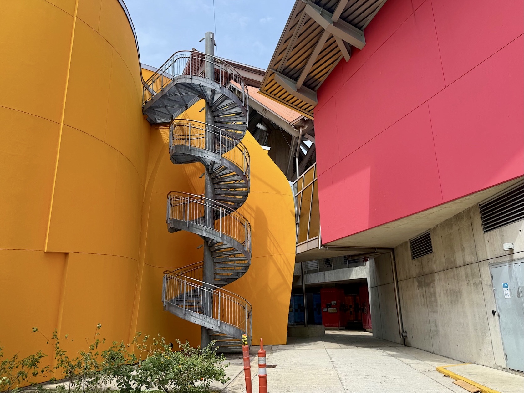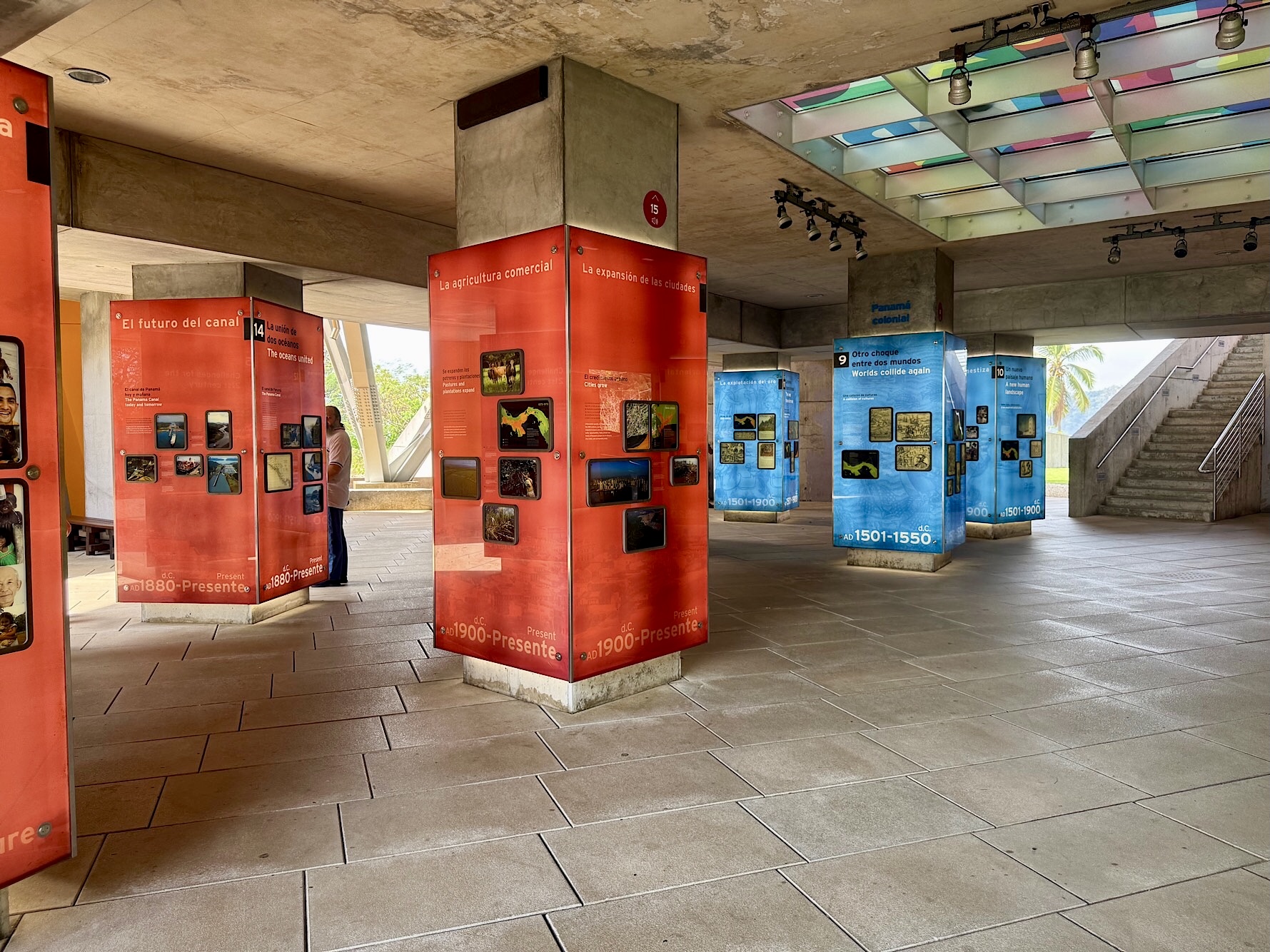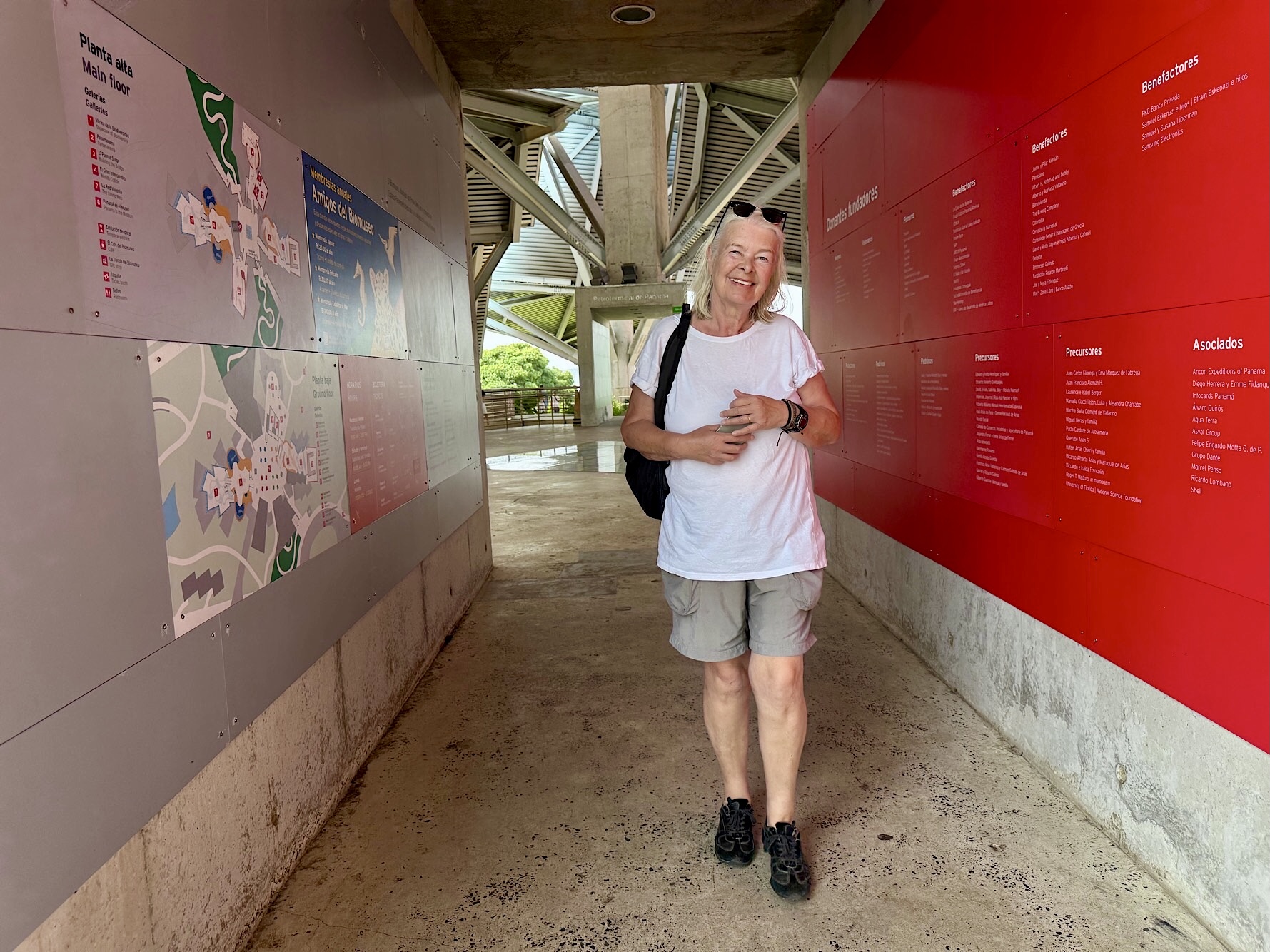 Unser Ziel: das BioMuseo, untergebracht im einzigen Gebäude, das Frank Gehry in Lateinamerika entworfen hat. Bereits zu Beginn der 2000er Jahre plante der Stararchitekt dieses Projekt, eröffnet wurde es 2014. Gehry, der im Dezember 2025 im Alter von 96 Jahren verstarb, hat hier ein Werk hinterlassen, das seine Handschrift unverkennbar trägt: ein kunterbuntes, skulpturales Bauwerk, das wie ein aufgeschlagenes Origami-Buch wirkt. Das Museum zeigt die Kultur- und Naturgeschichte Panamas sowie die ökologischen Folgen der Entstehung des Isthmus von Panama. Es wurde am Amador Causeway, dem Calzada de Amador errichtet. Der Eintrittspreis von 20 Dollar pro Nase schreckt uns ab. Doch schon im Außenbereich gibt es reichlich zu entdecken: die farbenfrohen Dachflächen, die spielerische Architektur, eindrucksvolle Schaukästen zum Thema Panama und die Aussicht auf die Einfahrt des Kanals.