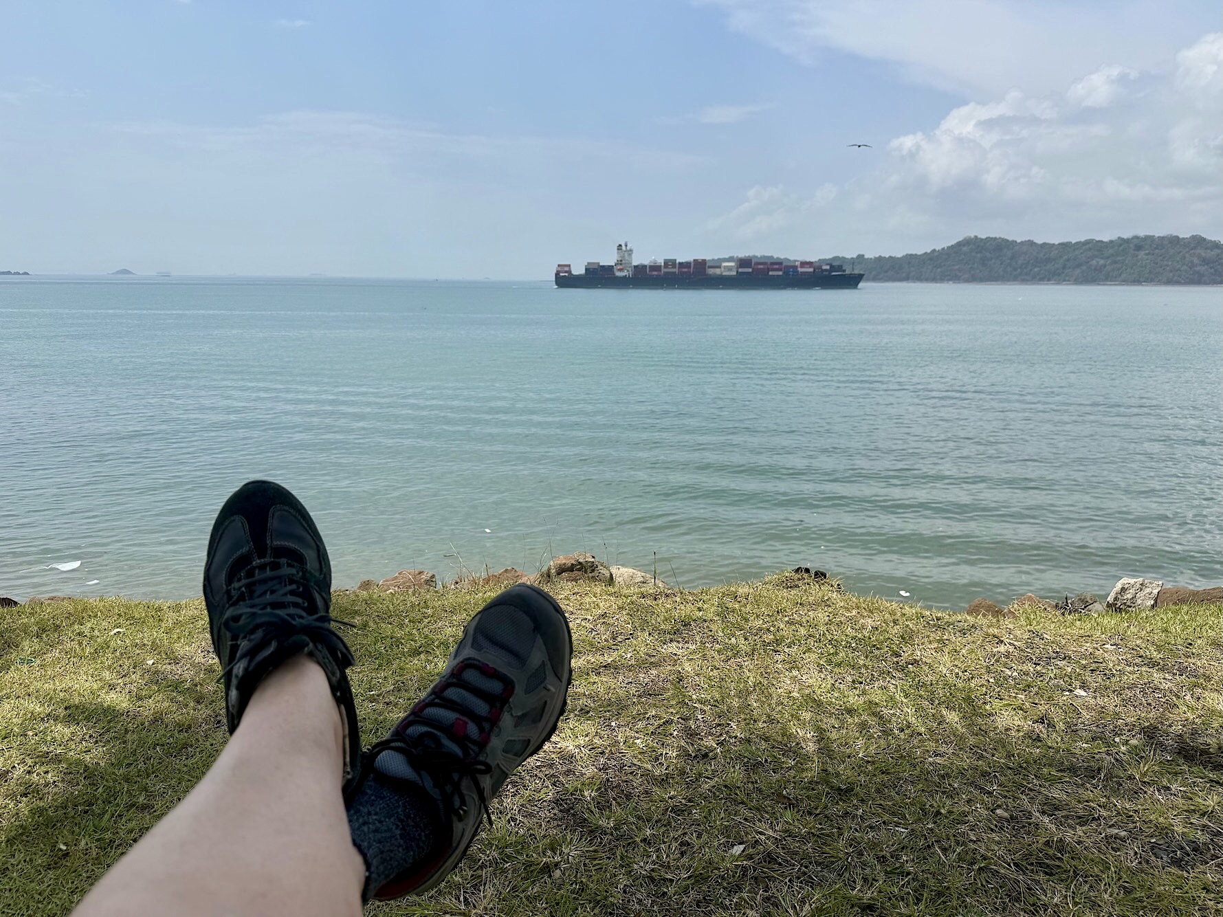 Statt ins klimatisierte Museum zieht es uns hinaus. Wir wandern Kilometer um Kilometer entlang des Amador Causeway, einer künstlichen Landzunge, die aus dem Aushub des Panamakanals entstand und mehrere kleine Inseln mit dem Festland verbindet. Immer wieder halten wir inne: Pelikane stürzen ins Wasser, Containerschiffe gleiten majestätisch in den Kanal. Es ist kaum fassbar, dass wir direkt am Ufer dieses Weltwunders spazieren. Mit jedem Schritt steigt die Hitze, bis wir am Ende des Causeway erschöpft in ein schlichtes Restaurant namens Atlantic einkehren, direkt am Yachthafen.