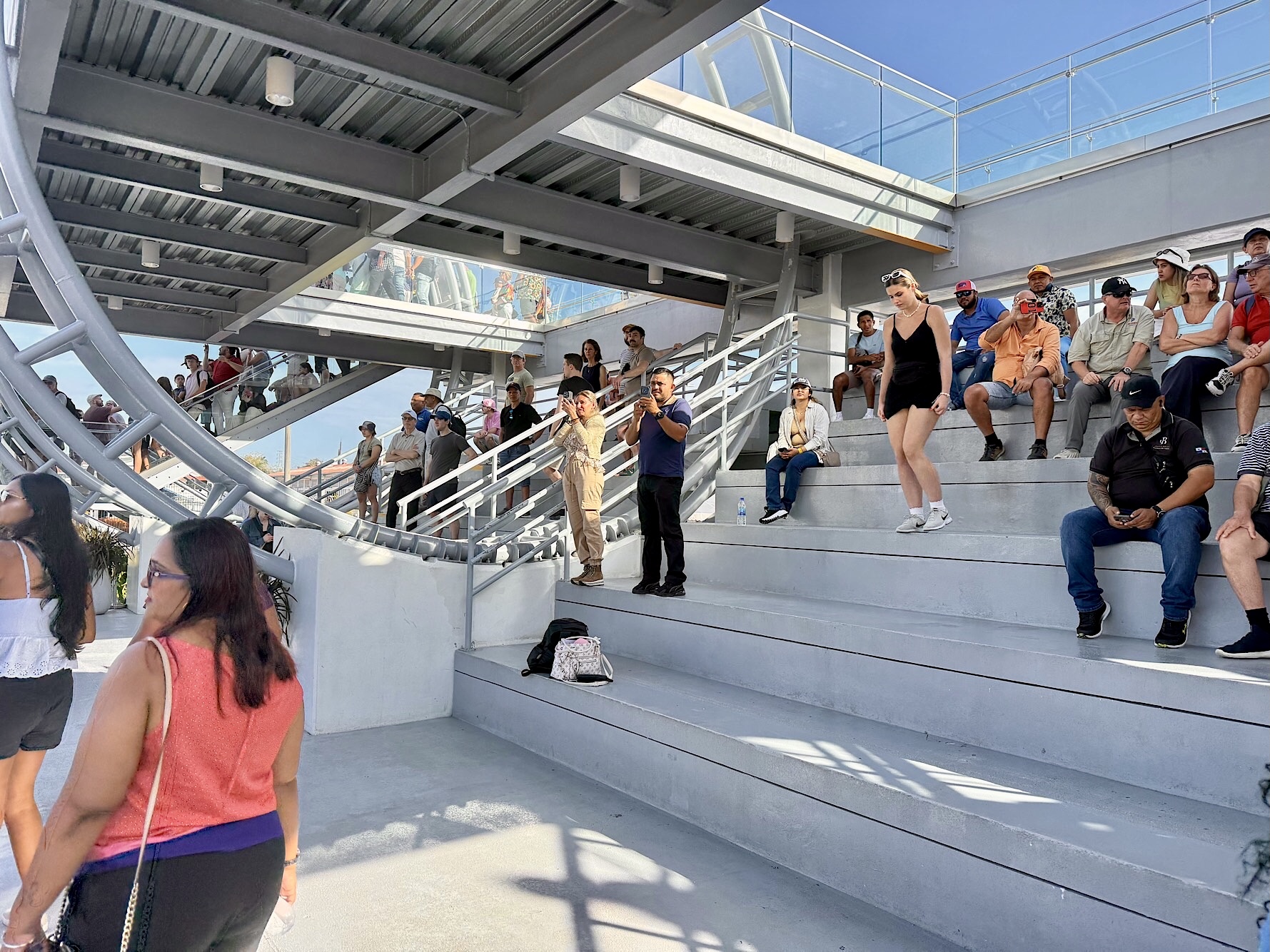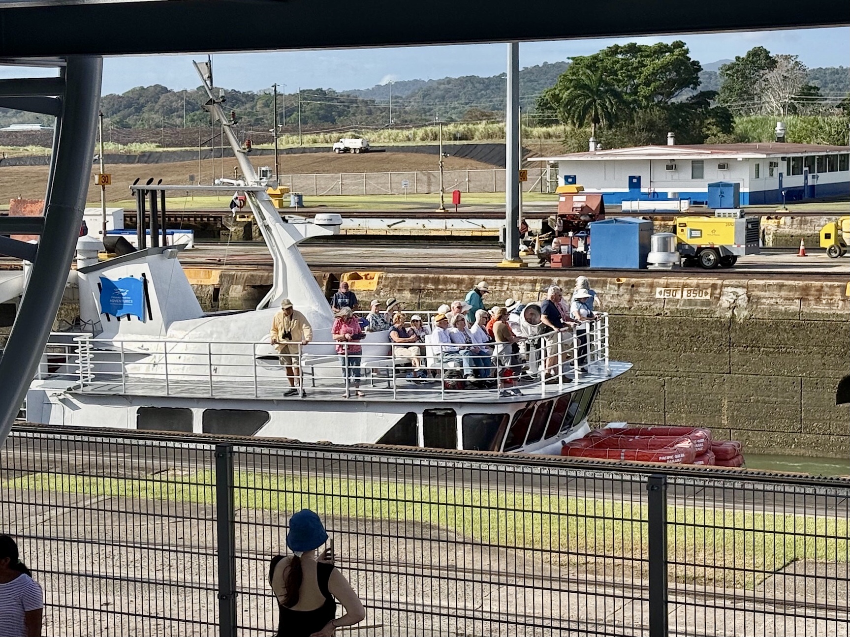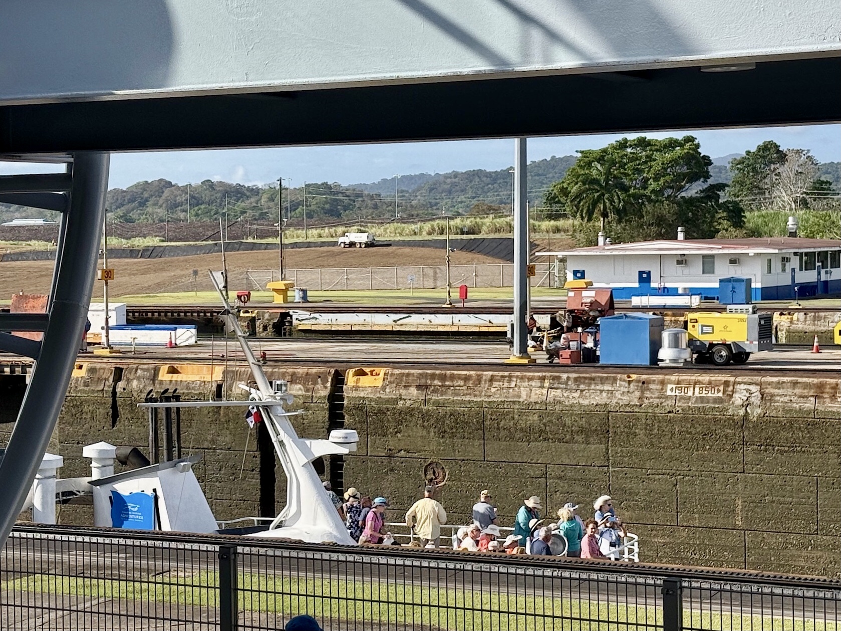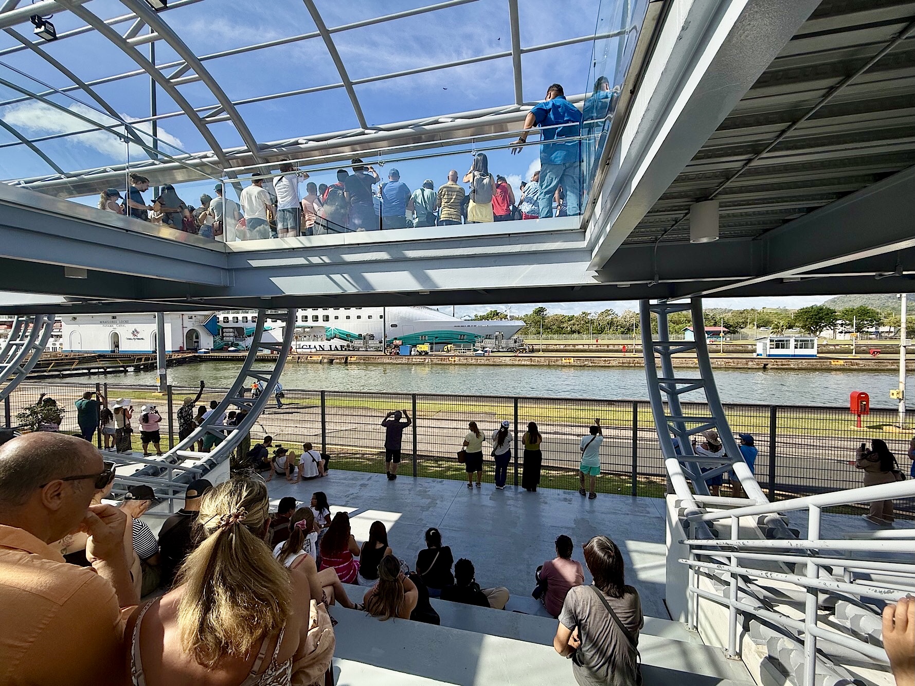 Um acht sitzen wir im Uber Richtung Miraflores, dem Besucherzentrum des Panamakanals. Frühaufstehen lohnt sich, die besten Plätze direkt an der Schleuse sind noch frei. Ein riesig langer Frachter und ein Touristenschiff gleiten hinein, begleitet von Schleppern, Lotsen und den berühmten „Mulis“, jenen kleinen Lokomotiven aus Österreich, die die Giganten millimetergenau in Position halten. Wir sehen, wie sich die Schiffe vor unseren Augen um acht Meter heben. Ungeheuer, welche Wassermassen hier bewegt werden, und ungeheuer auch, dass die Schleusentore noch die Originale von 1914 sind.