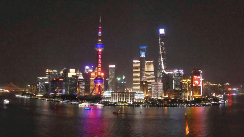 Die Menschenmenge, unter die wir uns auf Promenade des Bund mischen, ist unvorstellbar! Zigtausende sind unterwegs, um die großartigen Lichtspiele diesseits und jenseits des Flusses zu bewundern. Ein grandioses Schauspiel!