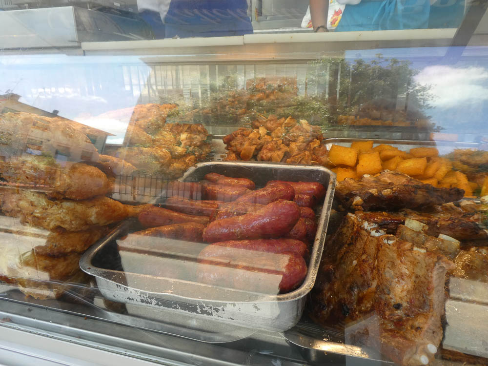 Sonst aber wenig, deshalb müssen wir noch in den Supermarkt. Grundnahrungsmittel wie Wein, Salat und frische Nudeln sind schnell gefunden, beim Fleisch wird es etwas kritischer. Es gibt fast nur Abgepacktes. Außerdem lähmen Hitze und Küchenausstattung unsere Kreativität. Aber ernähren müssen wir uns schließlich.