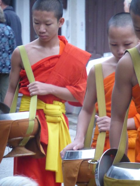 Vor kurzem haben die Orden mal aufgemuckt, weil sie keine Lust mehr hatten, ihre Mönche zum touristischen Abschuss freizugeben. Da hat die Regierung mit kurzem Prozess gedroht: Wenn ihr es nicht macht, schicken wir Laien in safrangelben Kutten. Luang Prabang ohne Almosengang – kommt nicht infrage…