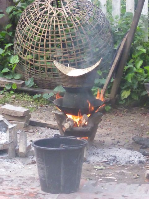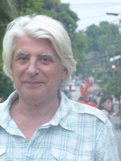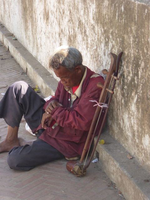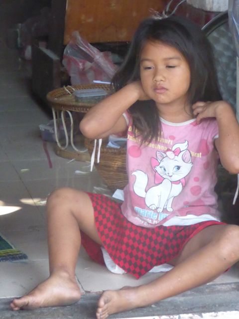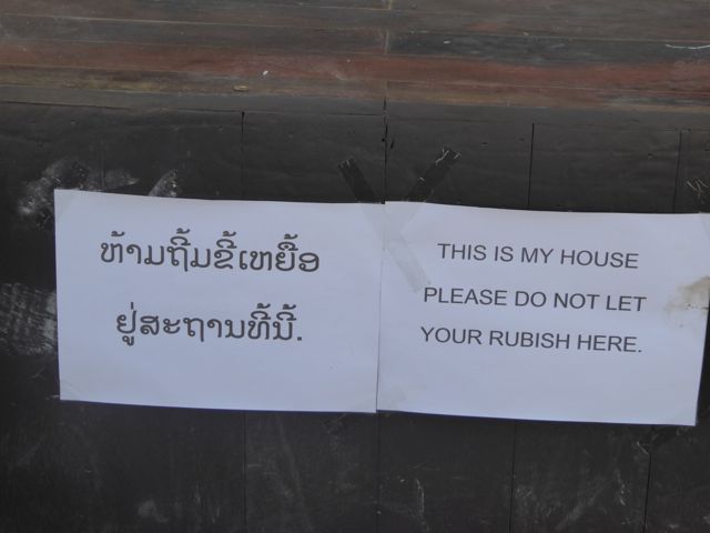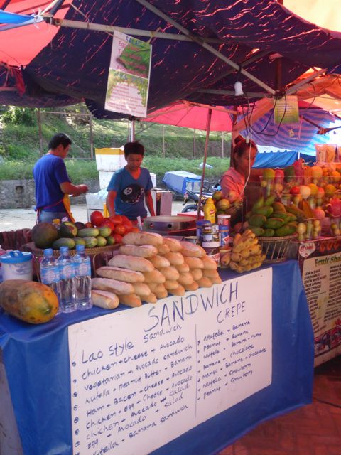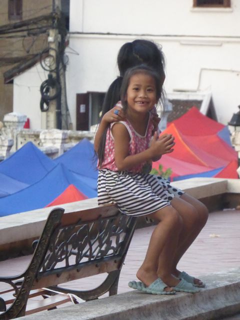 Auf dem Rückweg landen wir im Backpacker-Viertel. Erkennt man an ganz jungen Leuten aus aller Herren Länder, die sich nicht um die Bitten der Stadtverwaltung kümmern: Jungs ohne Hemd (damit möglicherweise die Tattoos besser sichtbar sind?), Mädels in kürzesten Shorts und knappen Tops. Sicher niedlich, nur nicht hier. Einige sehen zudem so aus, als hätten sie Dinge zu sich genommen, von denen die Eltern und der Staatsanwalt besser nichts wissen sollen. It’s partytime! Wir bleibt ein bisschen an einem Frischeladen sitzen, schlürfen Orangensaft und einen superguten Mango-Banane-Shake. Kostet zusammen 20000 kip. Wir haben natürlich wieder eine neue Währung, überall vier Nullen weg, dann klappt das schon…