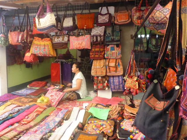Unten angekommen, werfen wir noch ein Blick auf den Nachtmarkt. Schöne Webarbeiten, Seiden, Schnitzereien und mehr. Wir gucken kurz und gehen zurück an den Fluss. Kleines Bierchen mit Blick, frühes Dinner ebenfalls mit Blick. So sieht Erholung also aus. Im Fernsehen läuft auf DW die Wiederholung einer Lanz-Sendung mit dem Ehepaar Stoiber. Dann doch lieber ein Portrait von Giancarlo Stanton, dem Baseballer, der gerade einen 325 Millionen Dollar Vertrag unterschrieben hat. 13 Jahres-Vertrag, dann ist es umgerechnet ja auch nicht mehr so viel 🙂