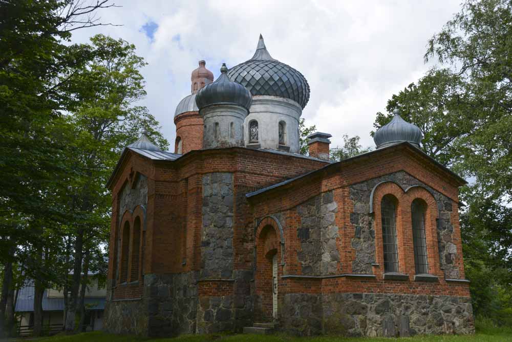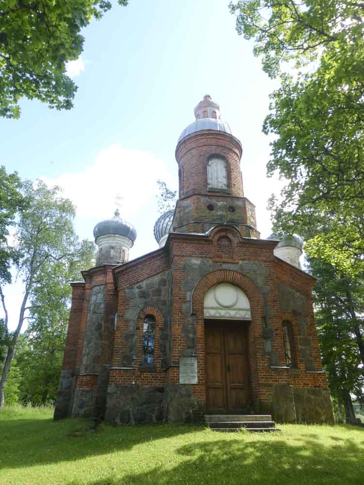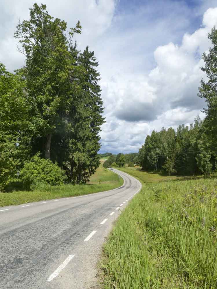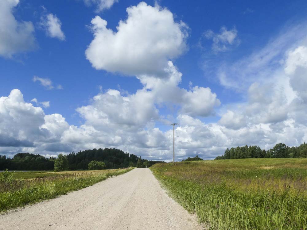 Der Nationalpark besteht aus dichten Wäldern, winzigen Ansiedlungen und vielen Störchen. Egal, wohin man guckt – sie sind schon da. Selbst dichter Regen hält sie nicht davon ab, direkt wie Tramper an der Straße zu verweilen. Bald nach einer wie aus einer Märchenwelt erscheinenden orthodoxen Kirche verlassen wir diese einsame Gegend Estlands und tauchen ein in eine einsame Gegend Lettlands.