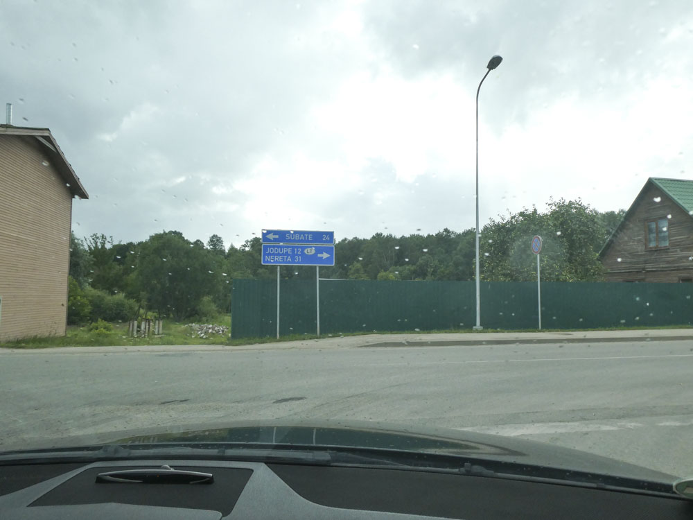Orte wie Alüksne und Gülbene liegen auf unserem Weg. So langsam machen wir uns auch Gedanken, wo wir schlafen werden. Und da ist es wieder, das baltische Problem: die Infrastruktur ist dünn. Mit Glück gibt es mal an einer Tanke (hier ist das Benzin mit 1,15 zehn Cent günstiger als in Estland) einen Kaffee, sonst absolut nichts. Keine Kneipe, kaum Café, kein Restaurant. Und kein Hotel. Wir setzen Hoffnung auf Madona, doch auch das ist der reine Graus. Nichts zu machen, also weiter. Tiefschwarze Wollen und intensive Sommergüsse begleiten uns auf dem Weg nach Südwesten. Jekabpils ist auch so ein Kaff zum vergessen. Zwar bejubelt sich der Ort gerade mit einer 350-Jahr-Feier – zum Hotel hat es allerdings nicht gereicht.