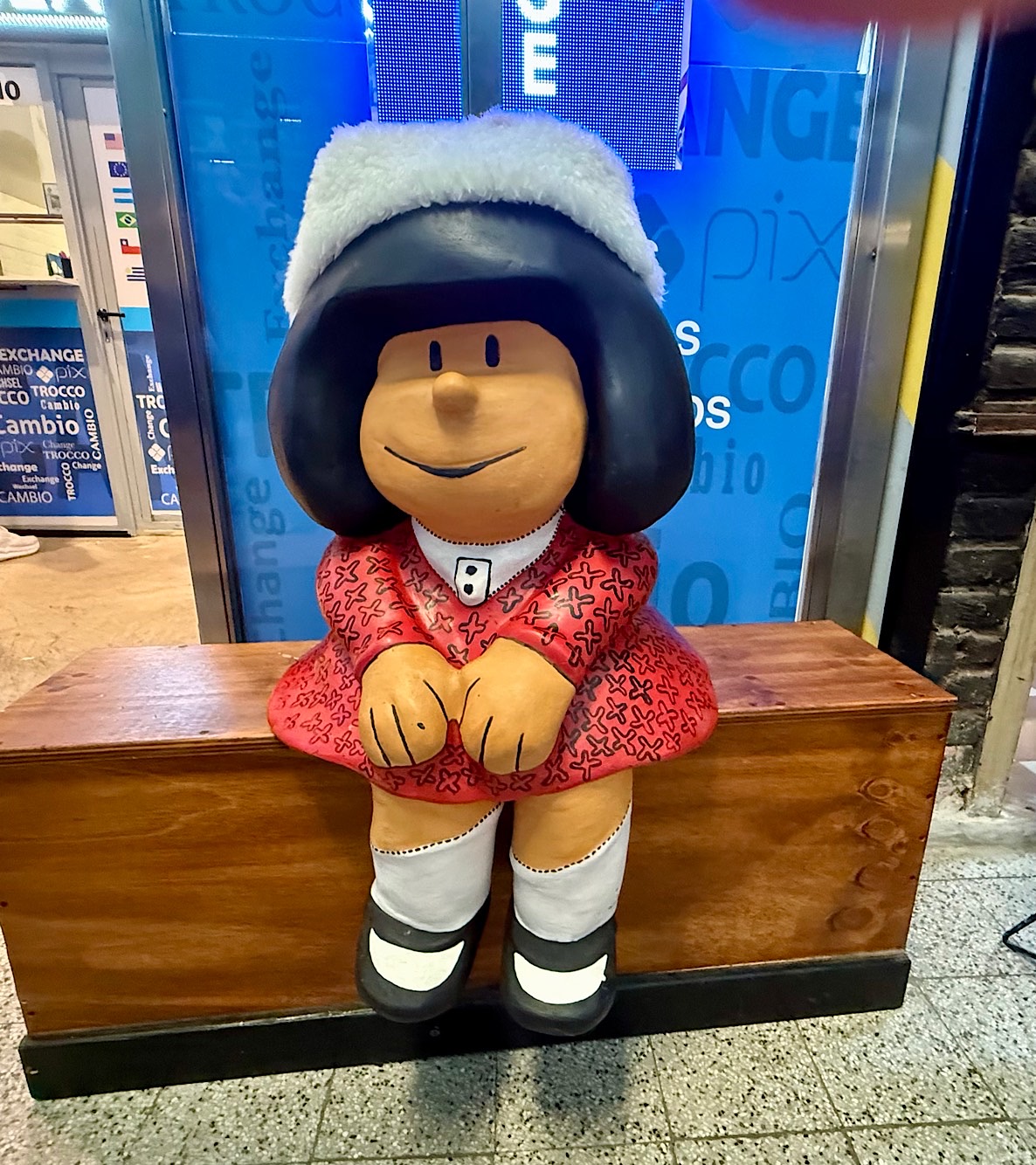 Der Platz dient als Orientierungspunkt für Besucher, aber auch für Händler, die hier seit Jahren ihre Stände aufbauen. Eine Tangoschule präsentiert sich mit ihren Eleven, alle Smartphones sind in der Luft, alle Vorsichtsmassnahmen offenbar ausser Betrieb. Der Markt mit seinen oft wohlhabenden Touristen ist natürlich das Dorado der Taschendiebe. Wir zücken die phones nur verhalten, nie im Gedrängel und verstauen sie subito wieder sicher.