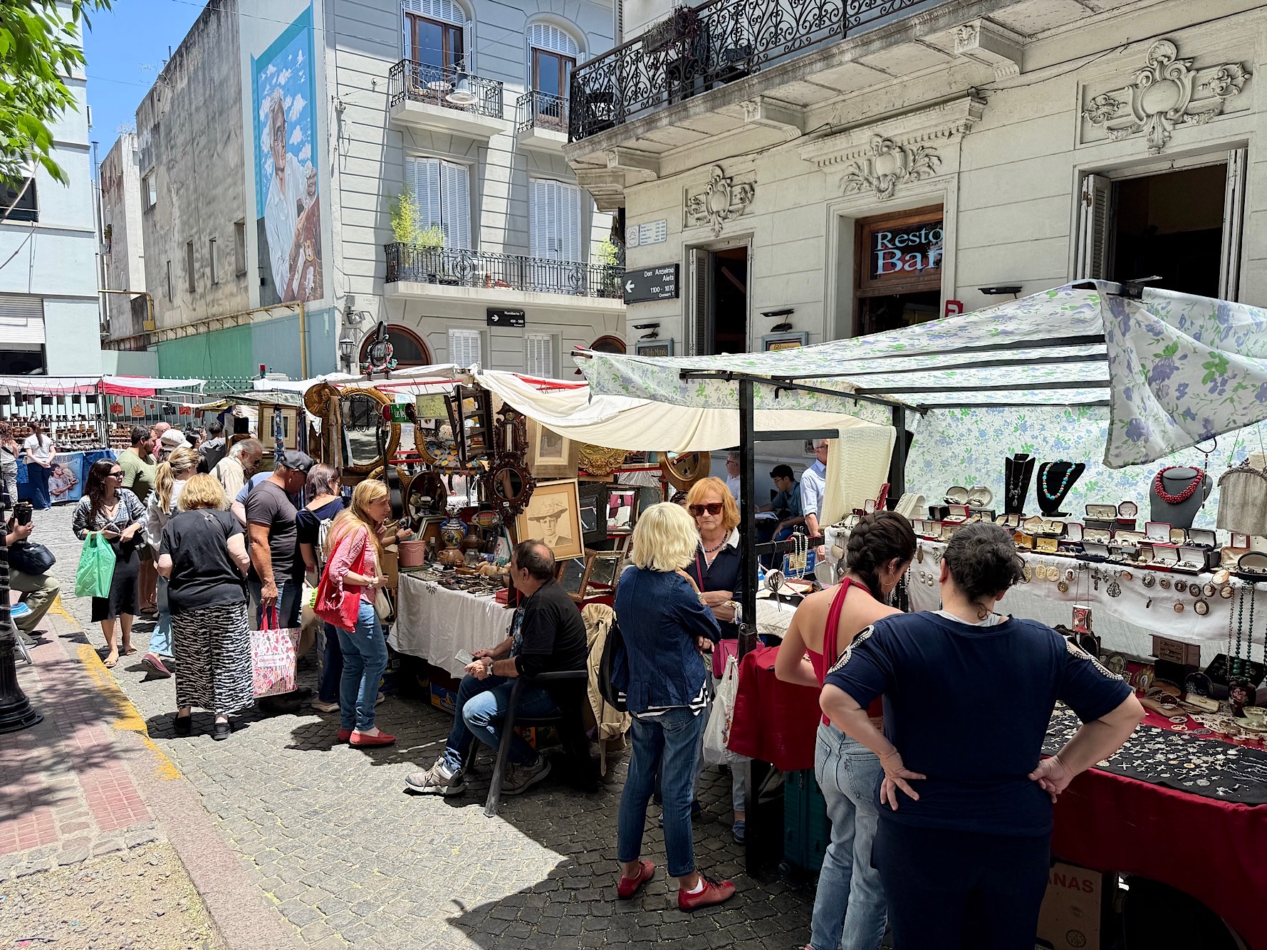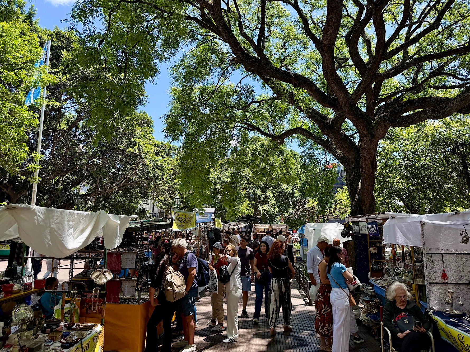 Hier beginnt den Sonntag früher als in anderen Teilen von Buenos Aires. Noch bevor die Stadt richtig in Bewegung kommt, füllt sich die Calle Defensa mit den ersten Ständen. Der Markt ist kein Spektakel, sondern eine Routine, die sich über Jahrzehnte etabliert hat. Wann immer wir in der Stadt sind, zieht es uns sonntags hierher.