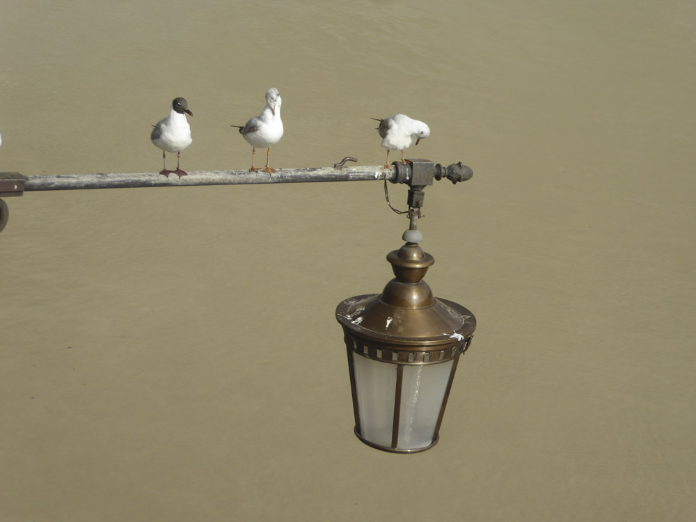 Wieder mal ziemlich erledigt lassen wir uns im Schatten der Engelsburg in einem Café nieder, in dem wir auch gleich donnernd über den Tisch gezogen werden: 2 winzige Gläser Weißwein, dazu 2 Tramezzini (Toastbrot mit Schinken und Käse) für 20 Euro…