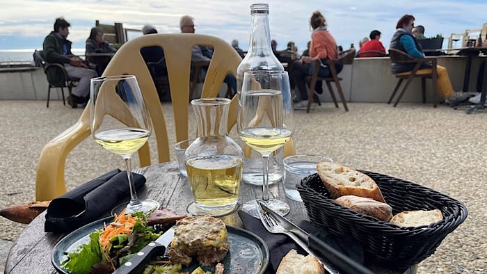 Wir sind soweit im Süden, dass das, was in Deutschland Schokocroissant und im Rest Frankreichs Pain au chocolat (Meisterkoch Alain Ducasse: „Das unbestrittene Glanzstück der französischen Feinbackwaren“) heisst, Chocolatine genannt wird. Ausgerechnet heute gönnen wir uns mal eines dieser wunderbar verführerischen Plunderteilchen.