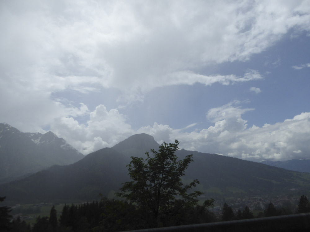 Ayer a la tarde tenĂ­amos una vista fantástica desde nuestro hotel, de las montañas „Kaisergebirge“ en Austria, pero hoy a la mañana estamos en medio de una nube y la niebla no deja ver a más de 40 metros.